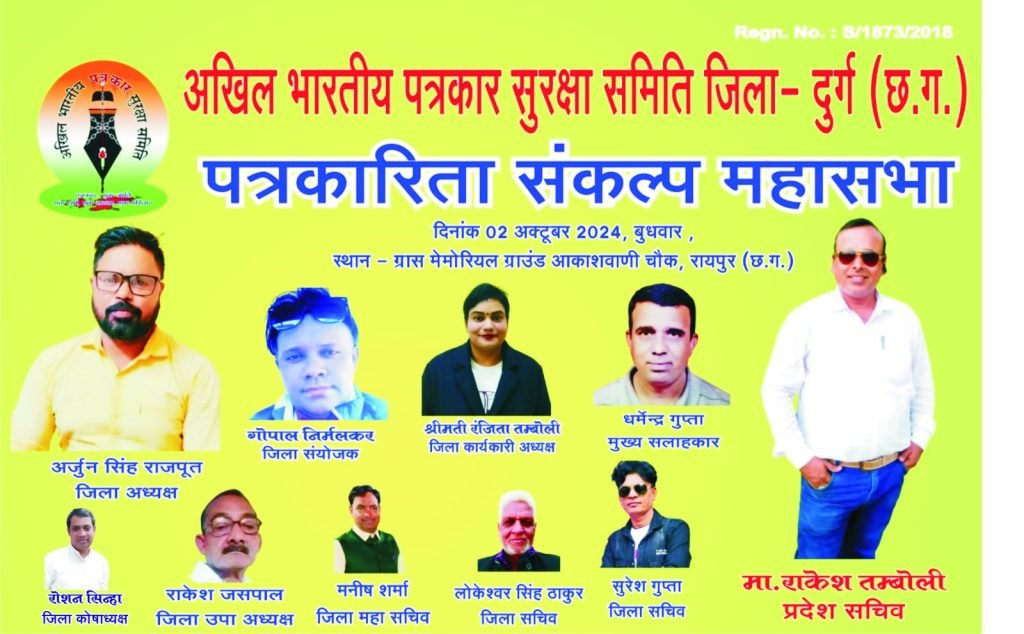 अखिल भारतीय पत्रकार सुरक्षा समिति का आह्वान अधिक से अधिक संख्या में पत्रकार 2 अक्टूबर को रायपुर पहुँचे।