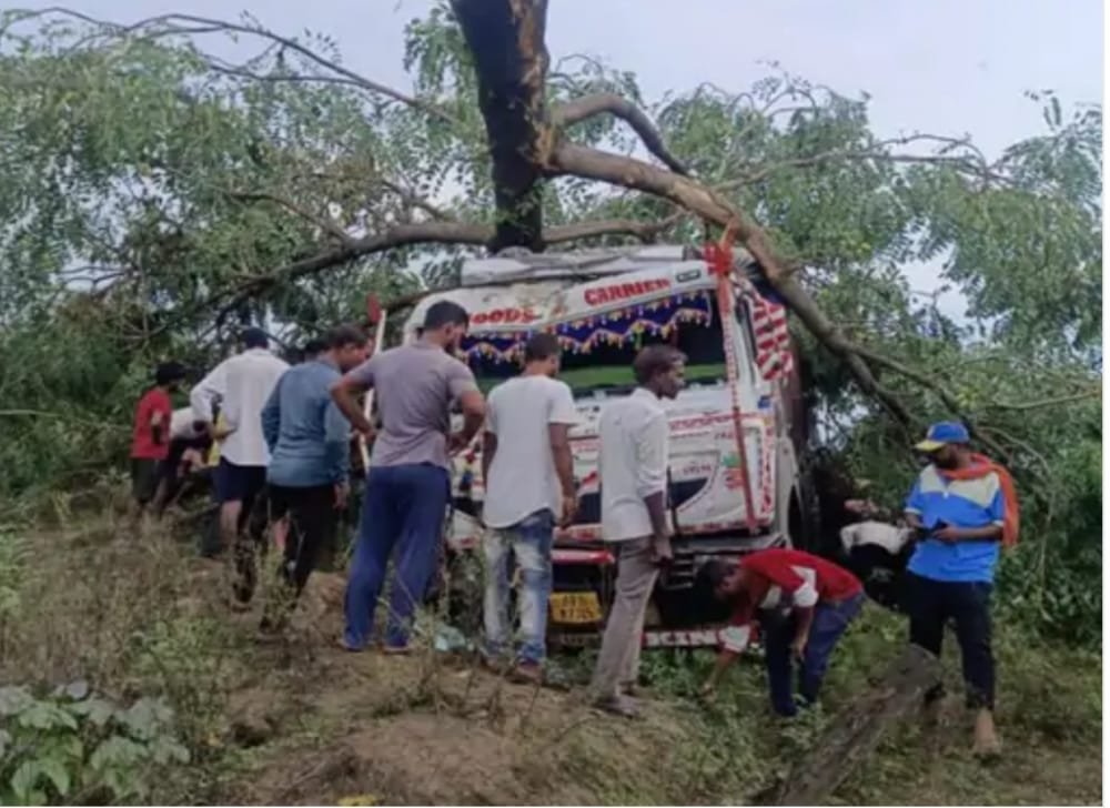 नंदिनी थाना प्रभारी मनीष शर्मा ने बताया कि दुर्घटना के बाद ट्रक खेत की तरफ मुड़ गया और एक बड़े पेड़ से टकराते हुए खेत में जा घुसा। टक्कर इतनी तेज थी कि पेड़ टूटकर ट्रक पर गिर गया।