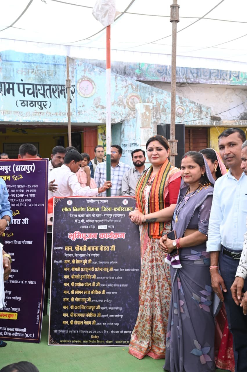 भावना बोहरा ने कहा कि पुल-पुलिया, सीसी रोड, नाली निर्माण, जल संरक्षण संरचनाएं, स्टापडेम और चेकडेम जैसे कार्यों से ग्रामीण अधोसंरचना मजबूत हुई है। इन विकास कार्यों से खेती, जल प्रबंधन और गांवों की आंतरिक कनेक्टिविटी में सुधार हुआ है, जिससे समग्र ग्रामीण विकास को गति मिली है। आज पंडरिया विधानसभा का हर गांव विकास की राह पर अग्रसर है। इस अवसर पर मंडल अध्यक्ष श्री नरेश साहू, महामंत्री श्री दारा सिंह, जिला मंत्री श्री राघवेंद्र वर्मा, सरपंच श्री गोपाल नेताम, जनपद सदस्य प्रतिनिधि श्री पिंटू सिंह, श्रीमती रूखमणि खोमलाल कौशिक जी सहित भाजपा कार्यकर्ता, पदाधिकारी, जनप्रतिनिधि एवं ग्रामवासी उपस्थित रहे